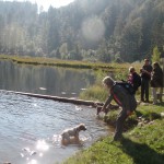 - eigentlich wollten die Lagotti aus dem Weiher nicht raus